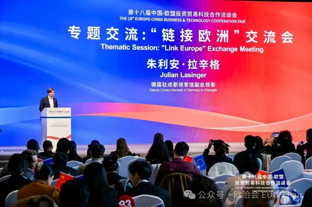11月20日下午,在第十八届中国-欧盟投资贸易科技合作洽谈会期间,“链接欧洲”投资与合作交流会在成都成功举办。中国欧盟商会全国副主席、西南分会主席冉梦之主持会议。成都市对外开放合作促进中心主任尹建致辞。